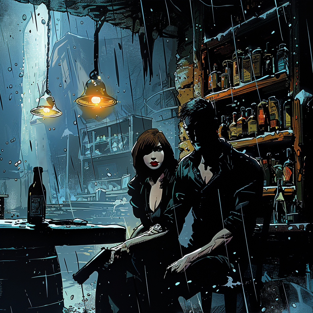 In the opulent yet decaying halls of the Seawench—a submarine turned speakeasy—they confront the Big Greasy, a grotesque yet powerful figure. The madman's brutal execution before their eyes sets off a chain of events that plunges Rez and Brasil deeper into the city's underbelly. Seeking solace and connection, they retreat to a surreal, neon-lit love hotel, but danger is never far behind. A shadowy figure sneaks into their room, only to be revealed as their cousin Memo, with a dire warning: a gang war is brewing, and they are at the top of the hit list.